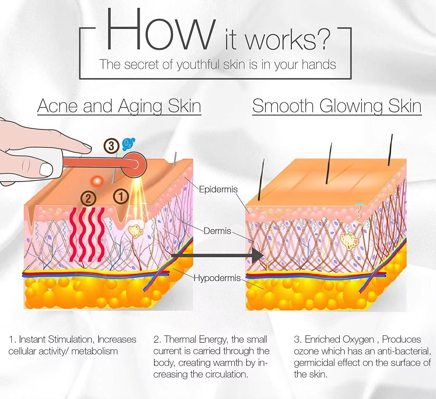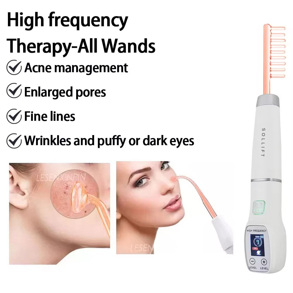 - High-Frequency Electrical Current: Delivers low-level electrical energy through glass electrodes filled with argon or neon gas.