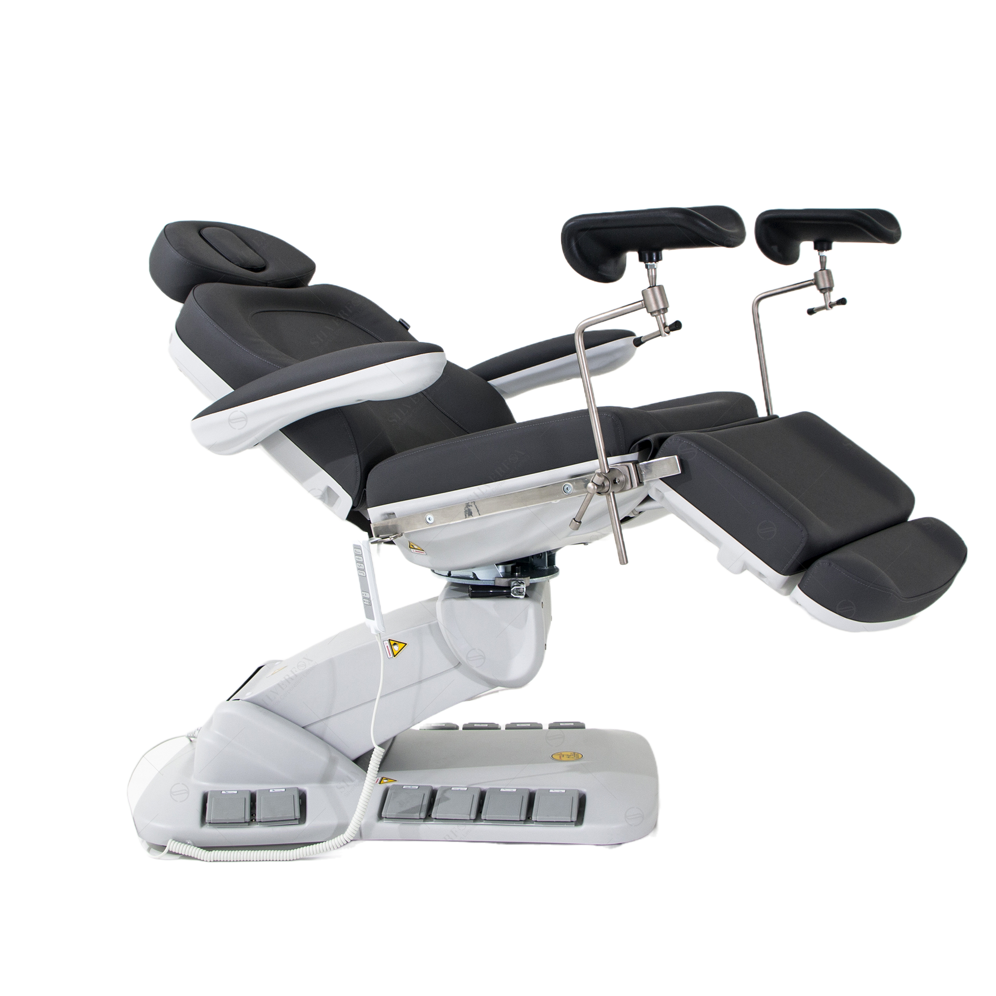 Arella bed offers Swivel, rocker switches and foot switches built in base, comfortable stirrups, enhanced microfiber upholstery and reset function.