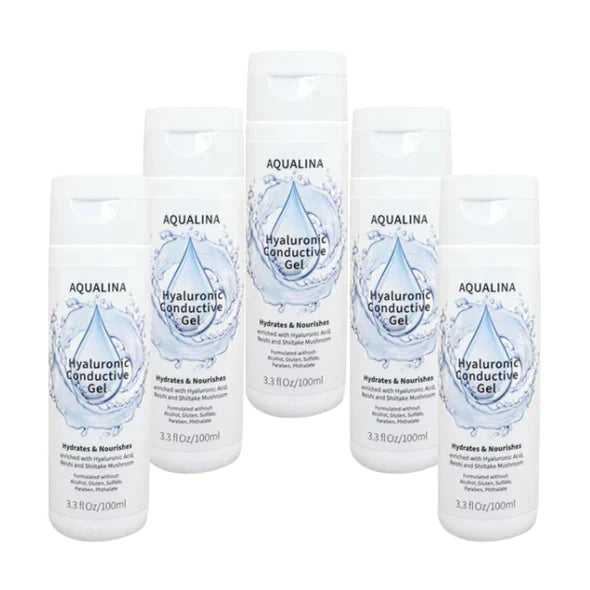 Aqualina's most popular conductive gel is enriched with essential ingredients like hyaluronic acid, shiitake mushrooms, and reishi mushrooms.