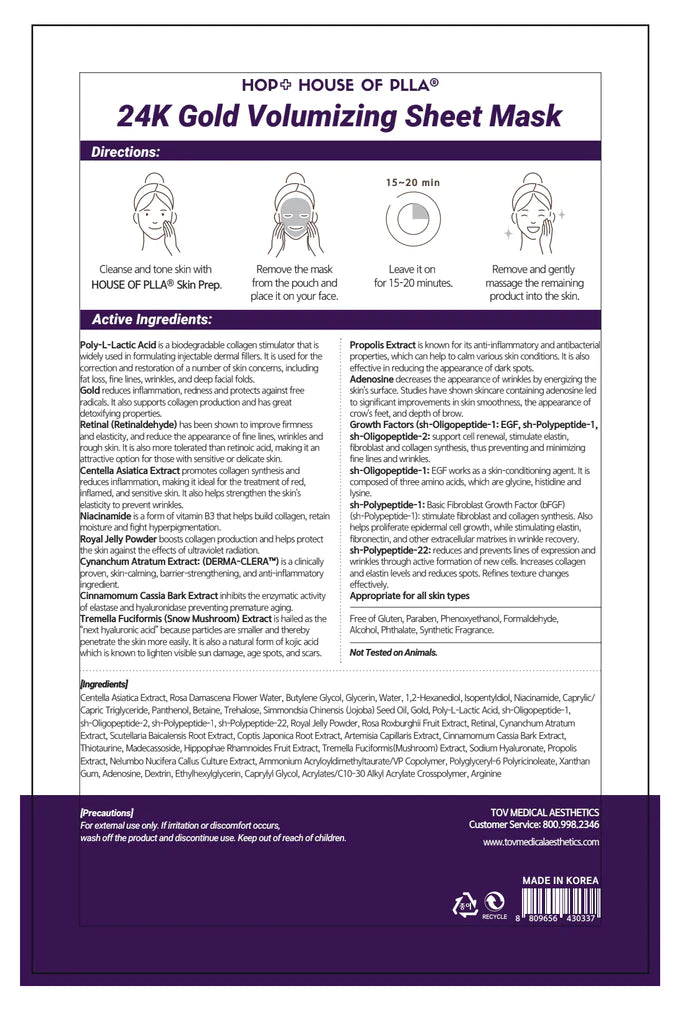 HOP+ 24K Gold Volumizing PLLA Sheet Masks: 5pc