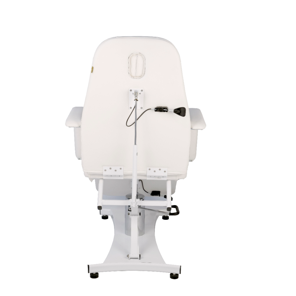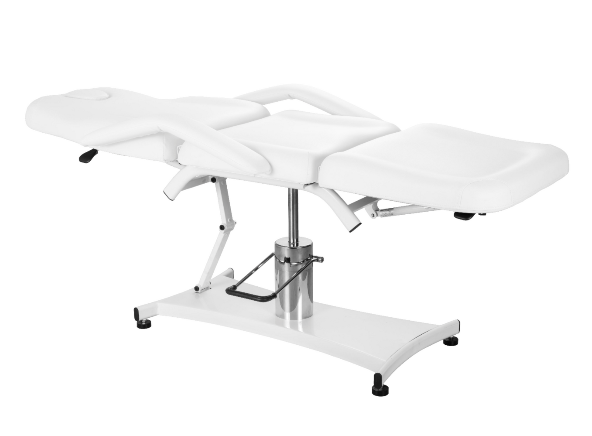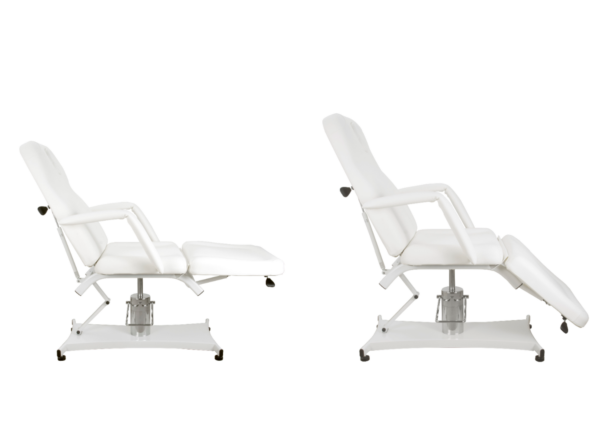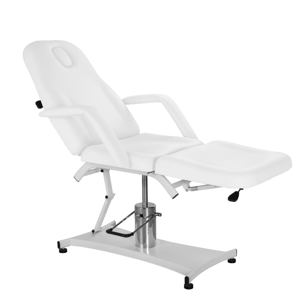The Comodo Hydraulic Bed is part of the GlowNar luxury line. This white hydraulic salon bed for sale comes equipped with removable armrests, a strong pump that controls its height, and a gas lift that controls the angles of the backrest and footrest. It is made of polyurethane and is easy to clean. Available in an elegant white, this high-quality bed will give any salon, spa space, or medical office a more sophisticated look and feel.