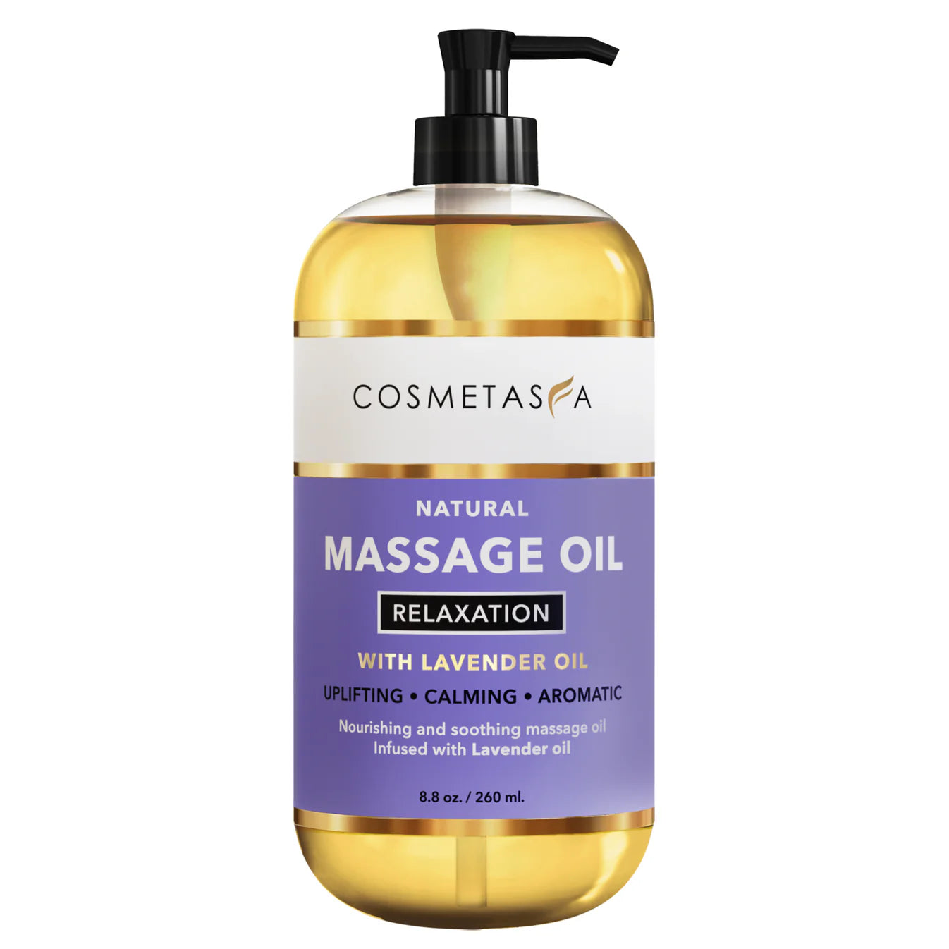 Experience the bliss of our lightweight formula as it glides effortlessly over your skin, leaving behind a silky-smooth finish without any greasy residue. The all-natural, aromatic fragrance of lavender enhances the massage experience, enveloping you in a cloud of tranquility.