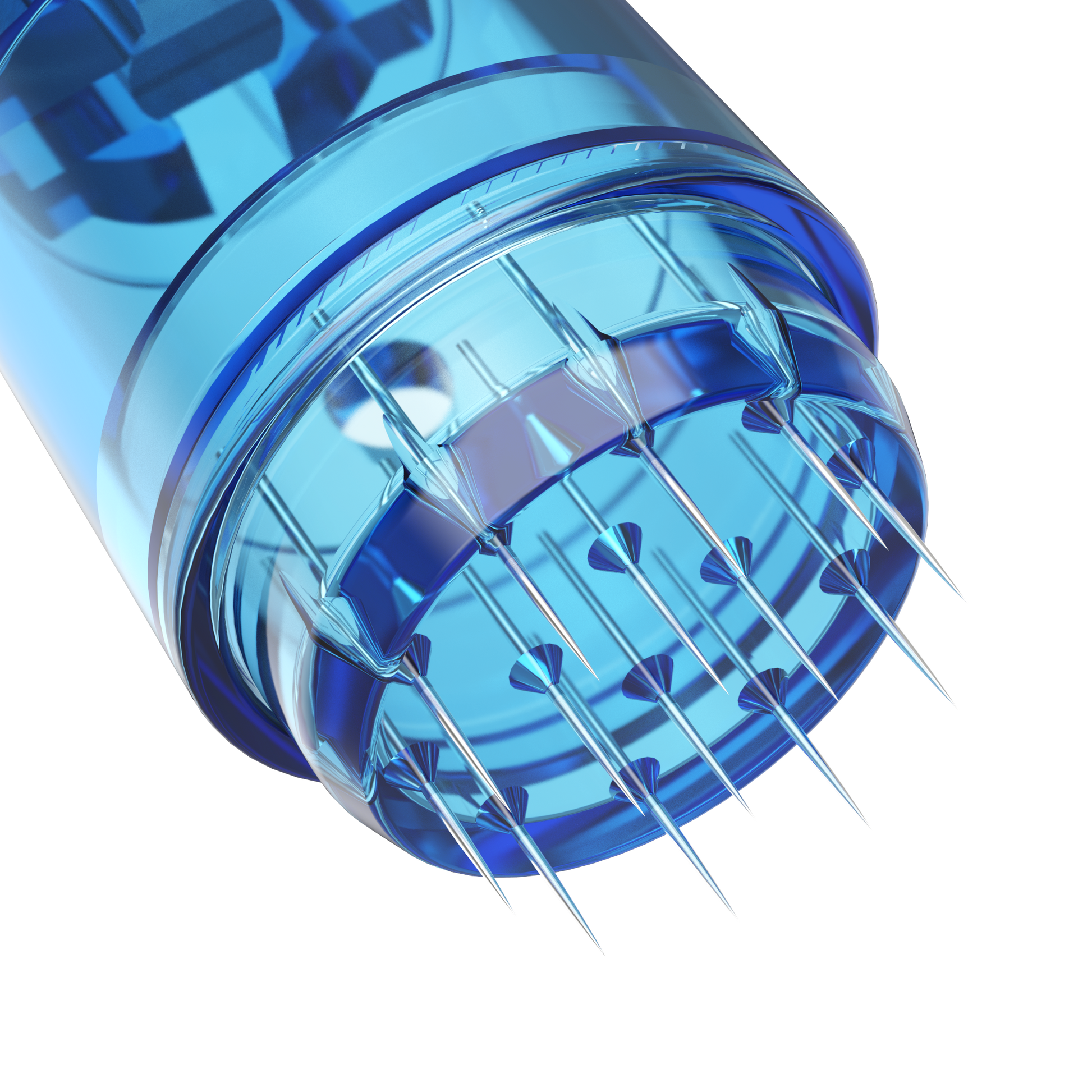 Each microneedling cartridge is EO (Ethylene Oxide) sterilized and individually packaged for single use only, ensuring the highest standards of hygiene and safety. The proprietary needle cartridge should not be re-sterilized or reused, maintaining the integrity and performance of each treatment.