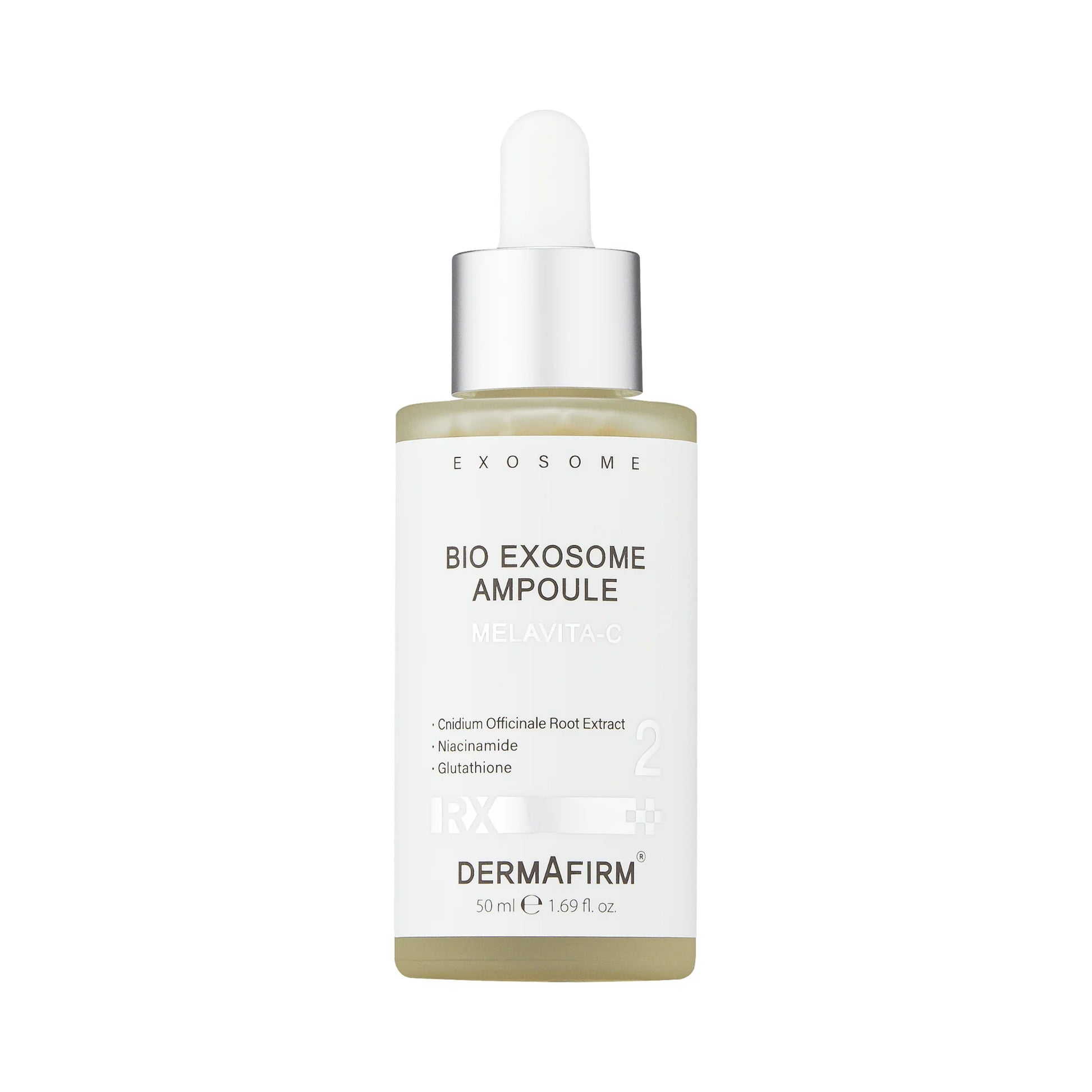 RX Bio Exosome Ampoule Melavita-C is a powerful brightening ampoule that treats blemishes on the surface and deeper layers of the skin prevent melanin production and promotes skin regeneration - ultimately brightening dull and uneven skin, strengthening the skin’s moisture barrier, reducing wrinkles and create a radiant complexion. The Melavita-C Exosome line is formulated with the Makino exosome, known for its antioxidant and brightening properties, and Melavita-C to brighten and improve uneven skin tone.