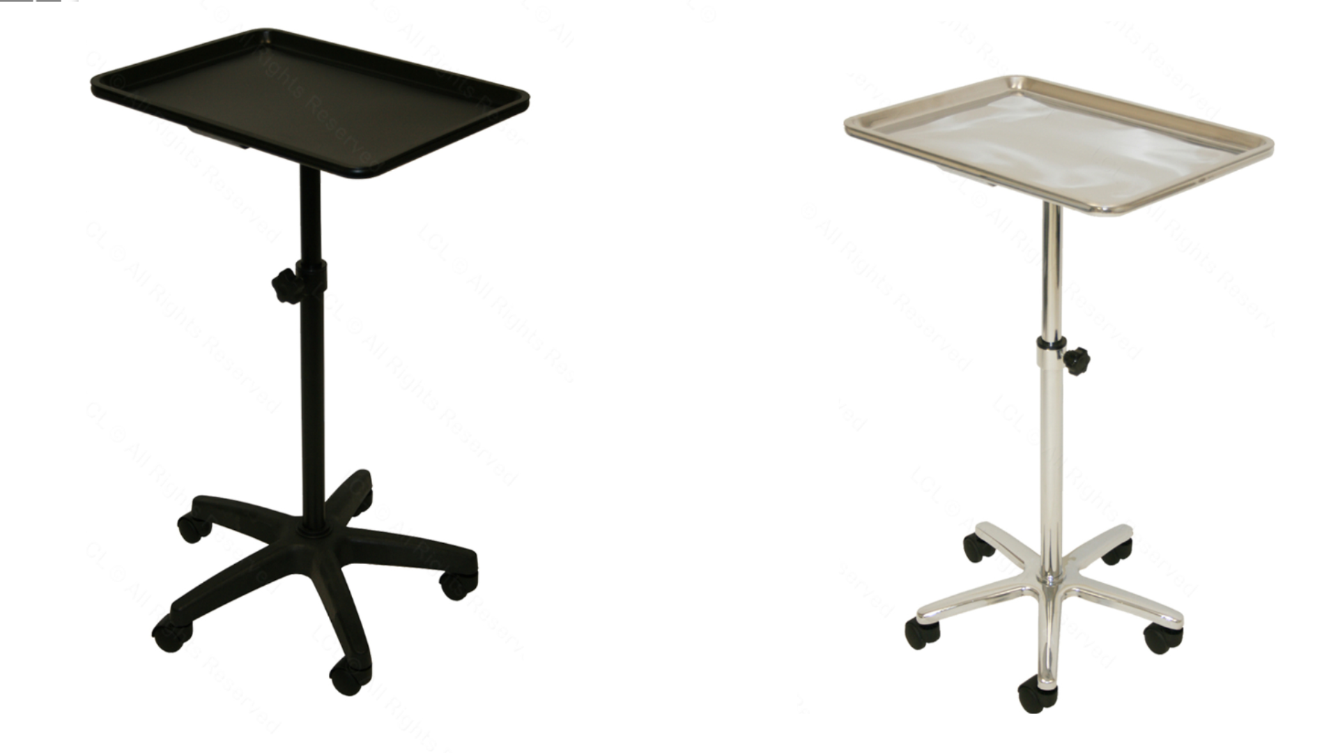 The Rolling Steel Tray is a portable and practical salon steel tray trolley on wheels of adjustable heights. It boasts smooth and easy movement with its foundation of 5 wheels, and generous tray space to accommodate all your tools and products. This tray cart with wheels is available in both a chrome finish and matte black steel finish.