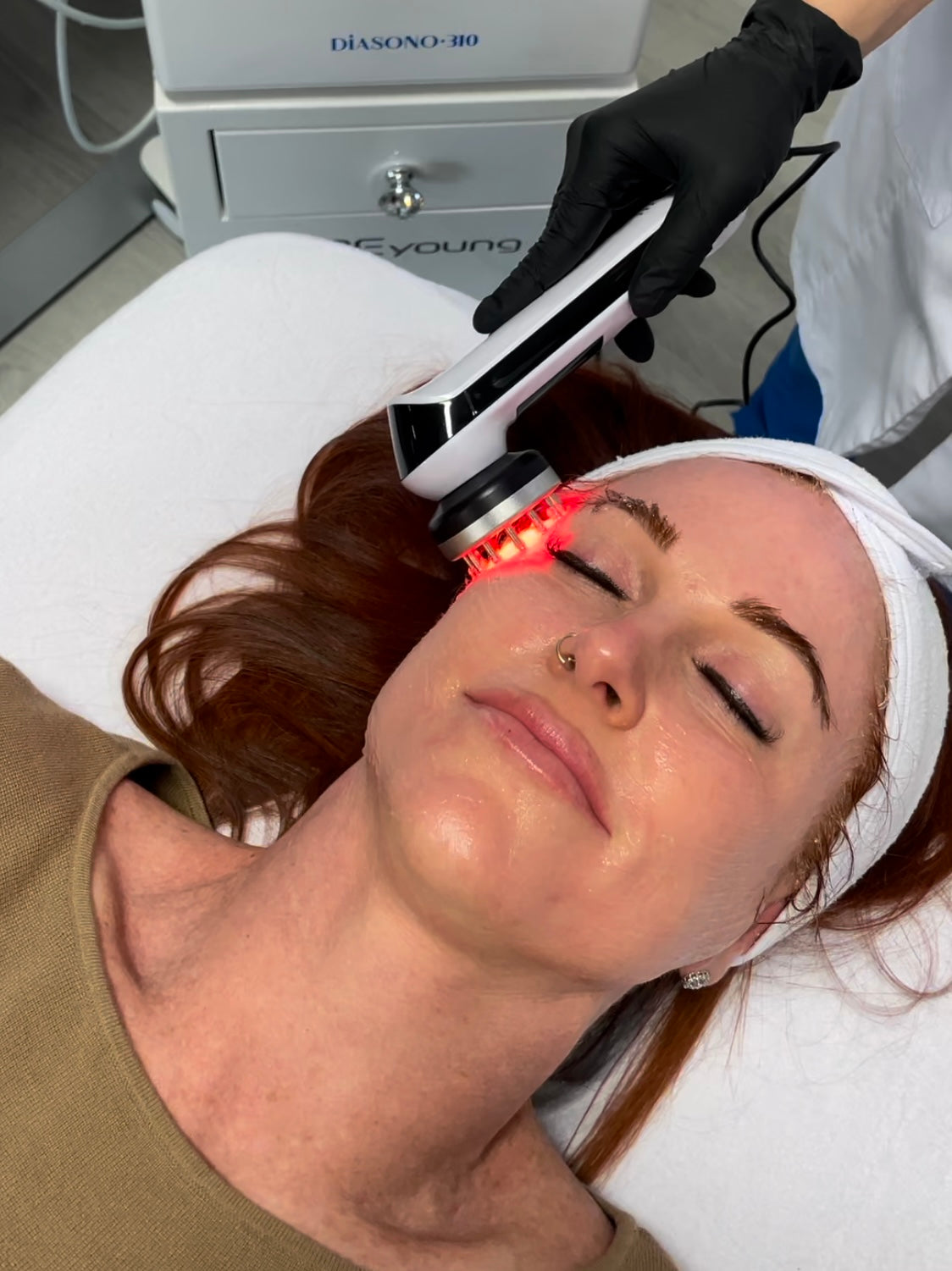 White light is a powerful option used in beauty services to assist in rejuvenation and vitality. It harnesses the energy of three lights which make it up: blue, green, and red to provide many benefits. This may include tightening and toning, targeting sun damage or dark spots, and reducing inflammation, all within the realm of general wellness and vitality.