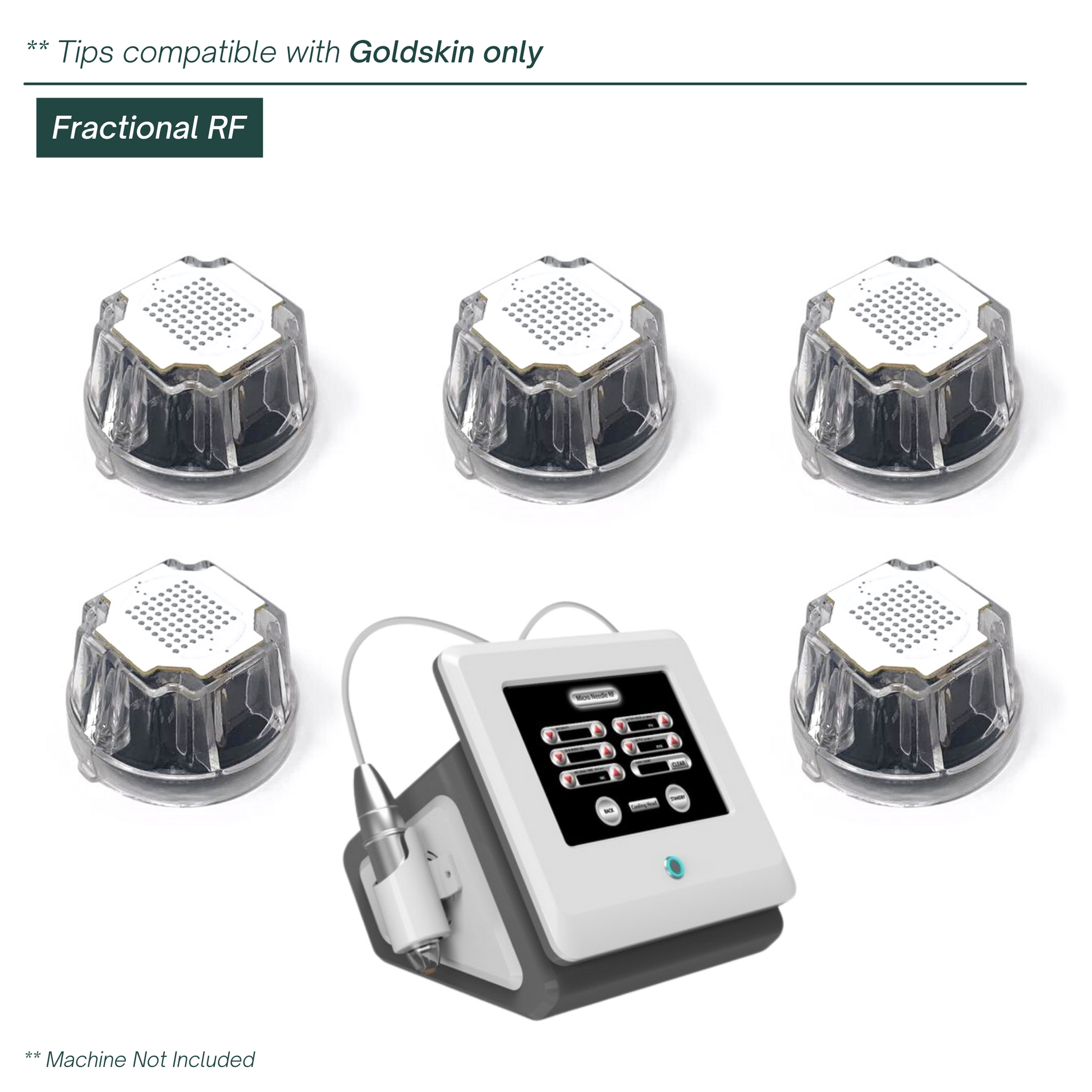This reusable fractional RF laser tip features 64 pins that penetrate the epidermis to induce collagen remodeling and production to tighten skin, erase wrinkles and fine lines, and improve the appearance of scars. Compatible with Goldskin only.