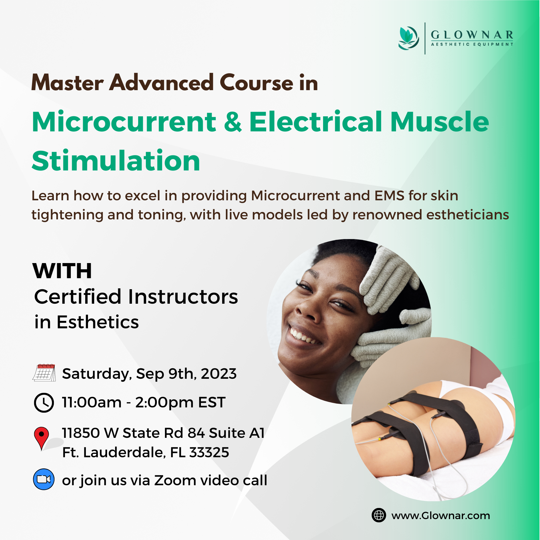 Introducing our next Advanced Master Course At Glownar Aesthetics: Learn how to effectively perform Microcurrent and EMS (electrical muscle stimulation) to offer your clients natural face lifts and muscle toning treatments for both face and body! This 2-in-1 three hour course will teach you everything you need to know to excel as an esthetician in a competitive field with our protocols and professional recommendations.