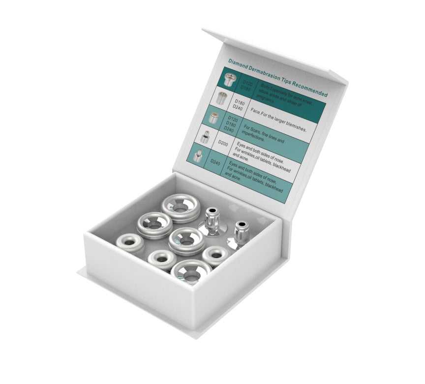 These tips have different levels of grit for different levels of exfoliating. Each tip is labeled as D and a number. The higher the D number, the finer the grit.