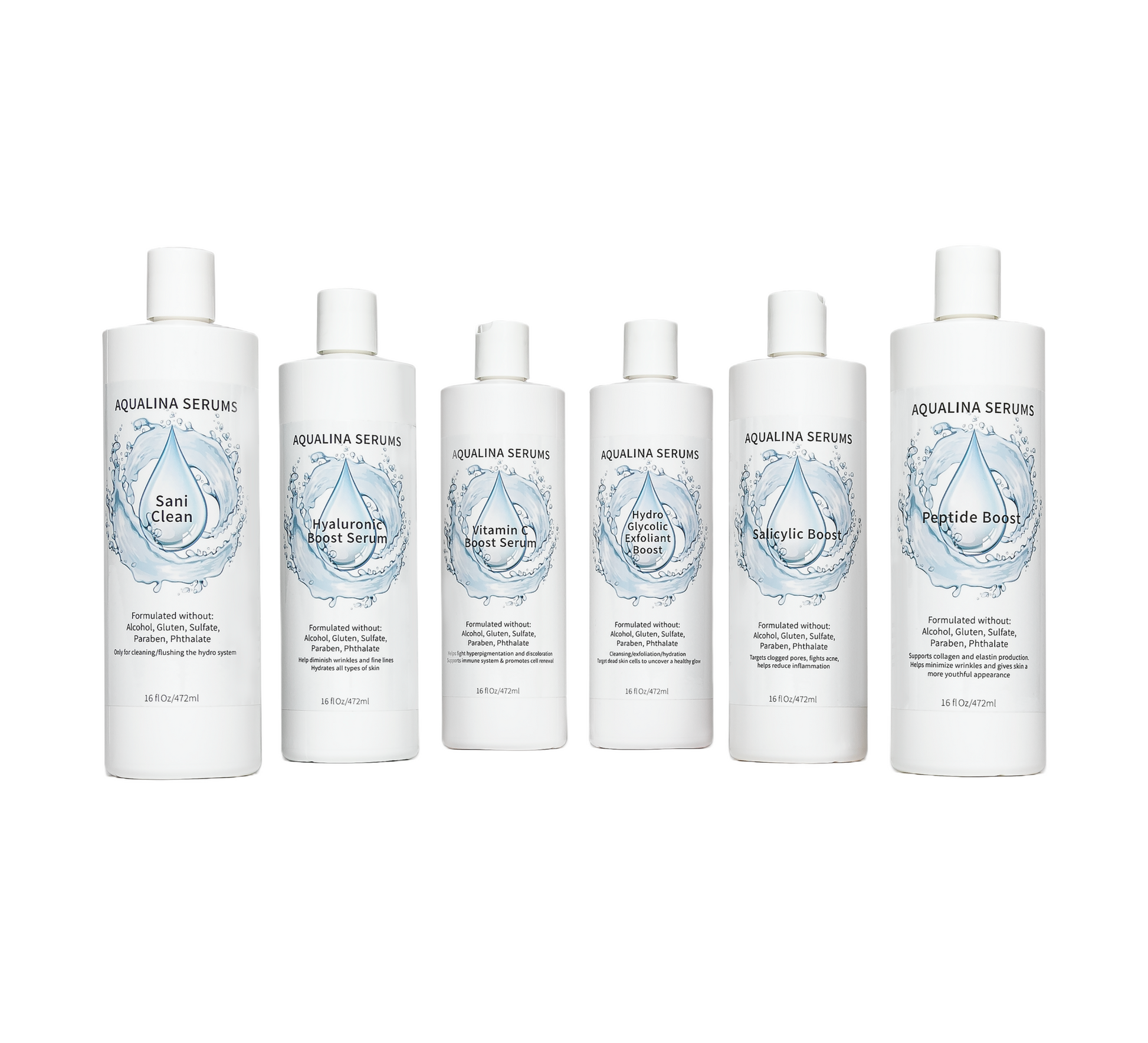 Aqualina Serums are crafted without alcohol, gluten, sulfates, parabens, or phthalates. They contain only natural ingredients and are concentrated to work effectively with various hydro dermabrasion, oxygen, and other water-based serum systems.