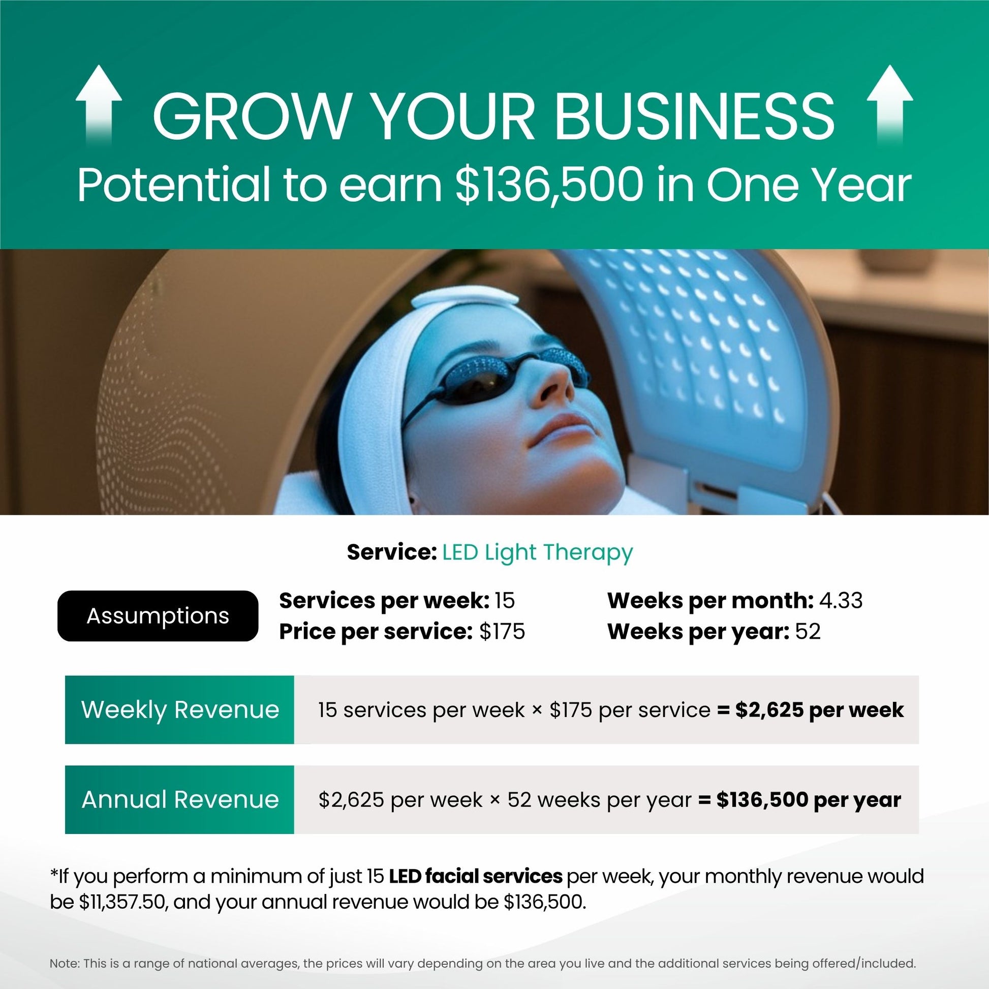 LED Light Therapy is one of the most popular and effective non-invasive skin care treatments used by estheticians, medspas, and wellness providers. Loved by clients for its relaxing experience and wide range of benefits, LED therapy can be performed on all skin types and is easily paired with facials, chemical peels, microneedling, or other professional skin care services.