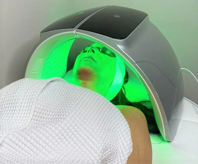 Green light is known for its calming and balancing effects. It helps improve skin tone and target discoloration.